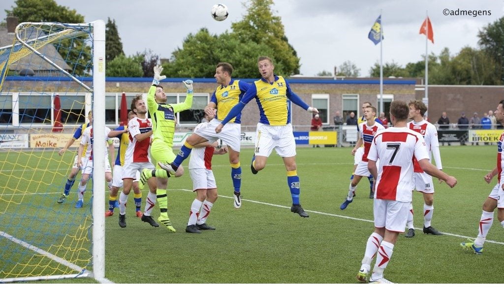 [vc_row][vc_column][vc_column_text]Volkel nam voor rust een 0-1 voorsprong door Luuk van den Elzen in de 40e minuut. Nadat Rick Verwijst in de vijfde minuut na rust de stand verdubbelde naar 0-2 gingen vele Volkelse harten sneller kloppen.[/vc_column_text][/vc_column][/vc_row][vc_row][vc_column width=”1/2″][vc_single_image image=”11937″ img_size=”medium” alignment=”center” style=”vc_box_rounded”][/vc_column][vc_column width=”1/2″][vc_single_image image=”11938″ img_size=”medium” alignment=”center” style=”vc_box_rounded”][/vc_column][/vc_row][vc_row][vc_column][vc_column_text]Donny van Herpen dacht daar anders over. De klasse spits van Berghem Sport trok in de 70e en 75e minuut de stand weer gelijk. Tom van Dalen trainer van Volkel: “Snelheid is niet zijn wapen, maar Van Herpen kan ongenadig zuiver en hard uithalen waar we geen antwoord op hadden.”[/vc_column_text][/vc_column][/vc_row][vc_row][vc_column width=”1/2″][vc_single_image image=”11939″ img_size=”medium” alignment=”center” style=”vc_box_rounded”][/vc_column][vc_column width=”1/2″][vc_single_image image=”11934″ img_size=”medium” alignment=”center” style=”vc_box_rounded”][/vc_column][/vc_row][vc_row][vc_column][vc_column_text]Nadat Bram Kappen tien minuten voor tijd de 3-2 op de borden bracht leek het noodlot zich te voltrekken voor Volkel. Dat onrecht bleef de ploeg bespaard en was het Jan van de Rijt die de zaak weer gelijk trok naar 3-3. Diezelfde Van de Rijt kreeg dé kans op 3-4,maar dat onrecht bleef trainer Dennis Kroes van Berghem Sport dan weer bespaard.[/vc_column_text][/vc_column][/vc_row][vc_row][vc_column width=”1/2″][vc_single_image image=”11935″ img_size=”medium” alignment=”center” style=”vc_box_rounded”][/vc_column][vc_column width=”1/2″][vc_single_image image=”11936″ img_size=”medium” alignment=”center” style=”vc_box_rounded”][/vc_column][/vc_row][vc_row][vc_column][vc_column_text](Bron: