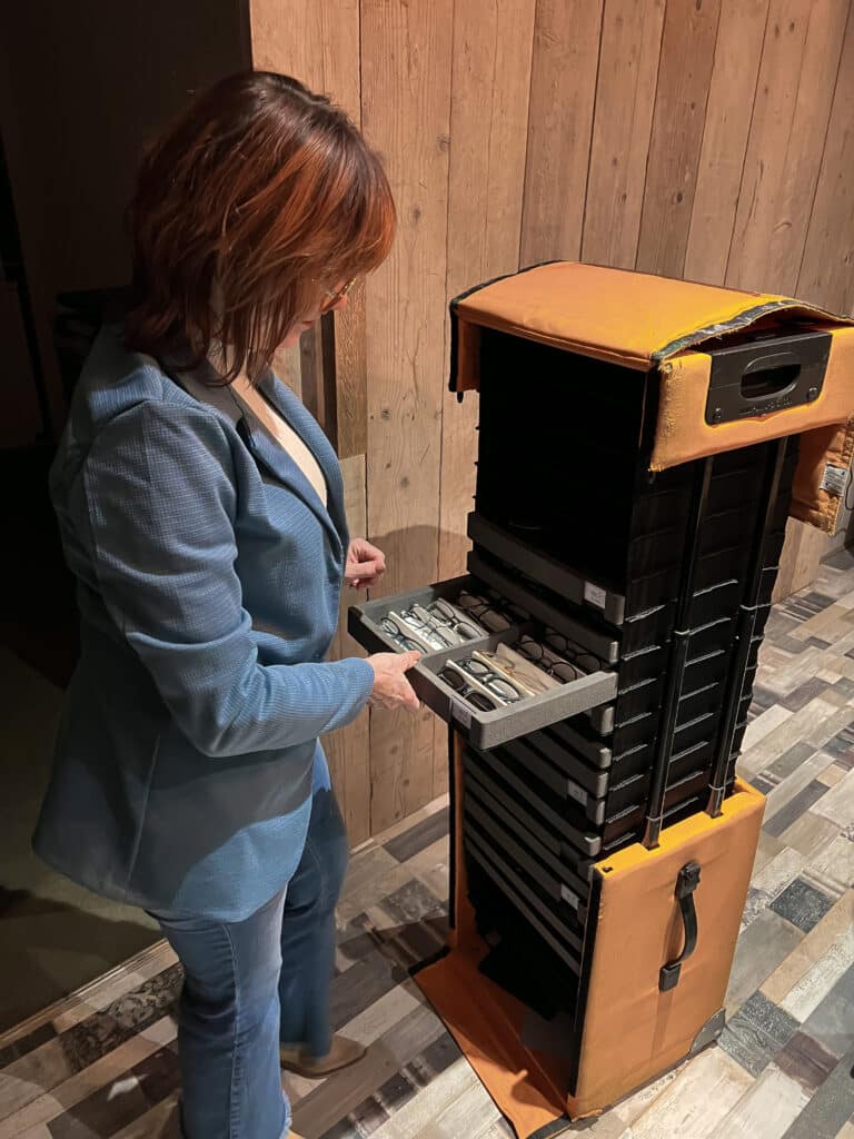 We vroegen ons af of je als brildragende opticien veel verschillende brillen draagt. Maar dat valt eigenlijk reuze mee! Els heeft eigenlijk altijd één favoriete bril die ze dagelijks draagt, tot ze zichzelf een nieuwe bril geeft, dan is de nieuwe bril haar favoriet. Haar bril is een soort visitekaartje, ze moet met de mode meegaan en daarom geeft ze zichzelf twee keer per jaar een nieuwe bril!