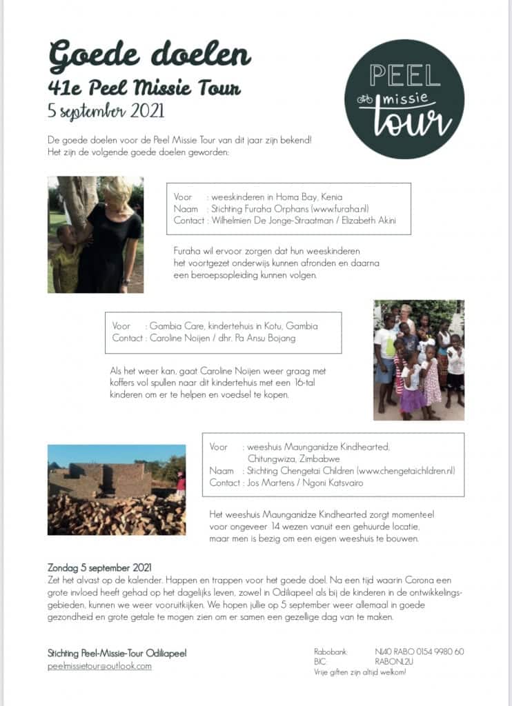 Goede doelen voor de 41e Peel-Missie-Tour van zondag 5 september 2021 bekend