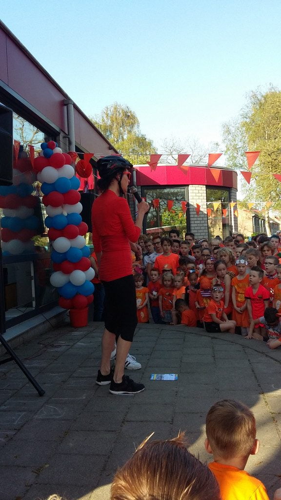 De dag werd geopend op het buitenpodium. Alle kinderen dansten en zongen mee met “Fit la la”, een lied speciaal voor de koningsspelen.