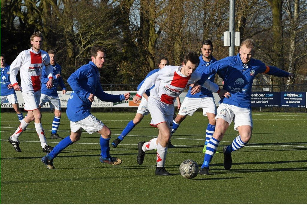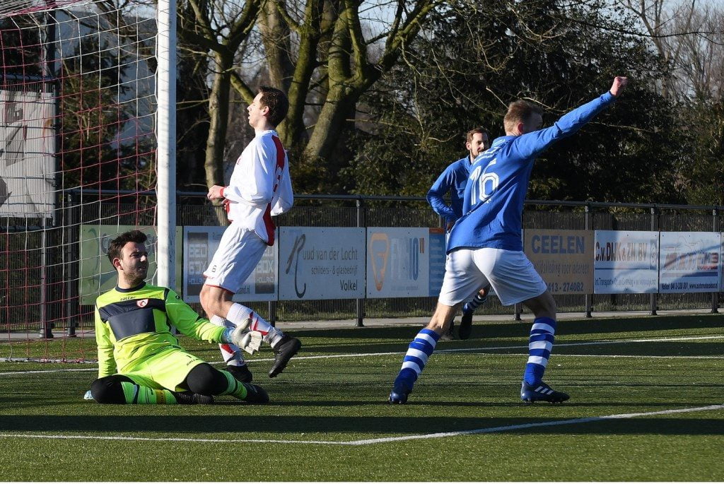 Na rust kantelde de wedstrijd volkomen. Een wedstrijd met twee gezichten. Het klinkt als een cliché, maar de confrontatie in en tegen Volkel had voor het Boxmeerse Olympia’18 toch echt twee gezichten. In Volkel keek Olympia’18 na een gelijk opgaande eerste helft tegen een kansloze 3-0 achterstand aan. “Normaliter is het dan gelopen. Ik heb de jongens gezegd er na rust er een wedstrijd van te maken, en een goed gevoel te kweken voor de volgende wedstrijd”, aldus trainer Wil Beijer. “Maar door twee goals in de 55e en 56e minuut kwamen we terug in de wedstrijd. Een corner van Okkie van Dalen werd door de keeper verkeerd in geschat en zeilde het doel in en Douwe Zwaan bracht de stand op 3-2.” Volkel dat zich in een fauteuil gewaand had, raakte in paniek. Douwe Zwaan bracht de 3-3 op het scorebord en daarmee was de koek voor de Boxmerenaren nog niet op. Jordi Toonen bezorgde Olympia’18 na 82 minuten de voorsprong. “Op deze overwinning is niks af te dingen. Uiteindelijk hebben we verdiend gewonnen”, besluit Beijer.
